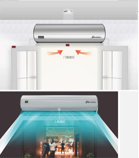 西奧多風(fēng)幕機(jī)與門控完美結(jié)合,門開啟的時(shí)候風(fēng)幕機(jī)自動(dòng)啟動(dòng),關(guān)門后風(fēng)幕機(jī)自動(dòng)關(guān)閉。門控風(fēng)幕機(jī),舒適為你自動(dòng)開啟